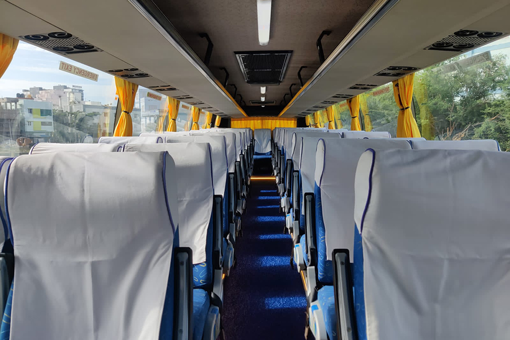 Make your trip as a group a luxurious one. The 40-seater Volvo bus makes every effort to ensure that everyone travels in comfort, safety, and style. Whether it’s a business trip or a special occasion, we’ll make sure your travel is smooth and unforgettable. To reserve your luxury bus and travel the way you deserve, contact our 40-seater Volvo bus rentals in Chennai by phone or online right now.